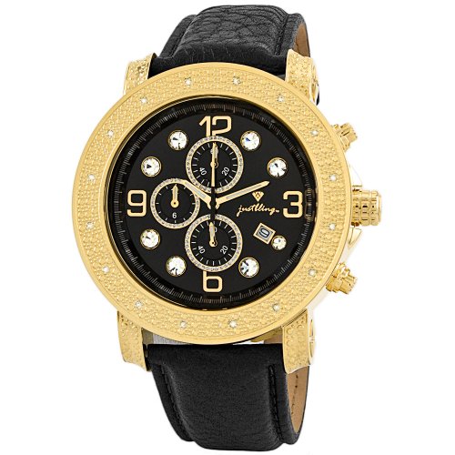 Just Bling Men's JB-6116L-B "Tazo" 18K Gold-Plated Chronograph Genuine Leather Diamond Watch Review