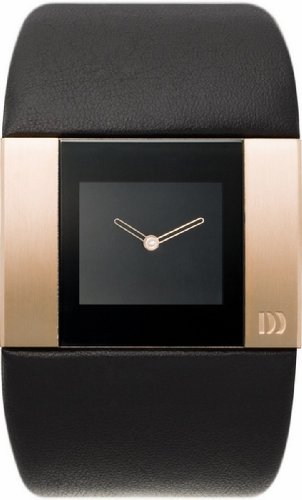 Stainless steel case with a genuine black leather bracelet. Fixed gold-tone and black bezel with an embossed Danish Design logo. Black dial with skeletal gold-tone hands. No markers. Quartz movement. Scratch resistant mineral crystal. Solid case back. Case dimensions: 42 mm x 29 mm. Case thickness: 9 mm. Tang clasp. Water resistant at 30 meters /100 feet. Functions: hours, minutes. Danish Design Mens Stainless Steel Watch IQ17Q783.